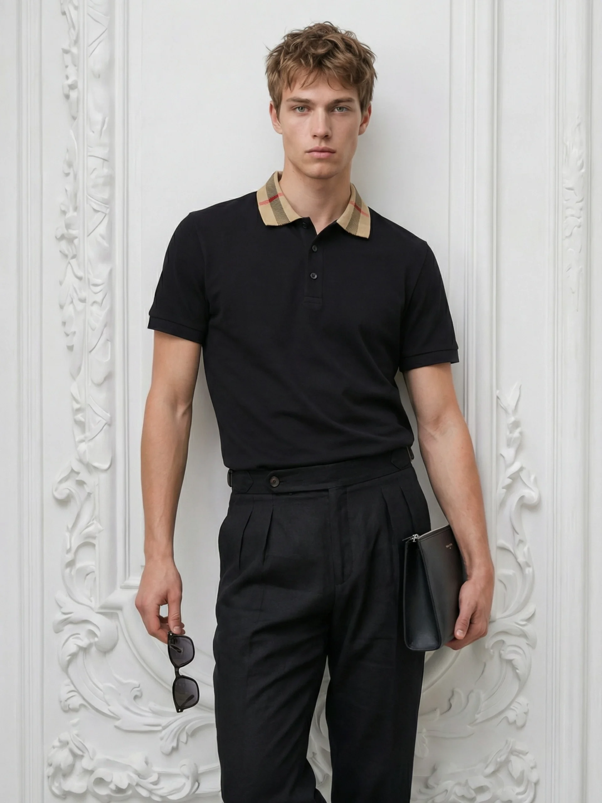 We work with monitoring programmes to ensure compliance with our social, environmental and health and safety standards for our garments. To assess compliance, we have developed a programme of audits and continuous improvement plans. Made of super-soft cotton, the Burbery Check Collar Polo Inspire Man Black Tshirt features a high neck and back, and a slight curve at the shoulders, which makes it extra flattering. If there’s one thing the 90’s got right, it’s the basics.