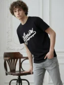 We work with monitoring programmes to ensure compliance with our social, environmental and health and safety standards for our garments. To assess compliance, we have developed a programme of audits and continuous improvement plans. Made of super-soft cotton, the Amirro Man Black Tshirt features a high neck and back, and a slight curve at the shoulders, which makes it extra flattering. If there’s one thing the 90’s got right, it’s the basics.